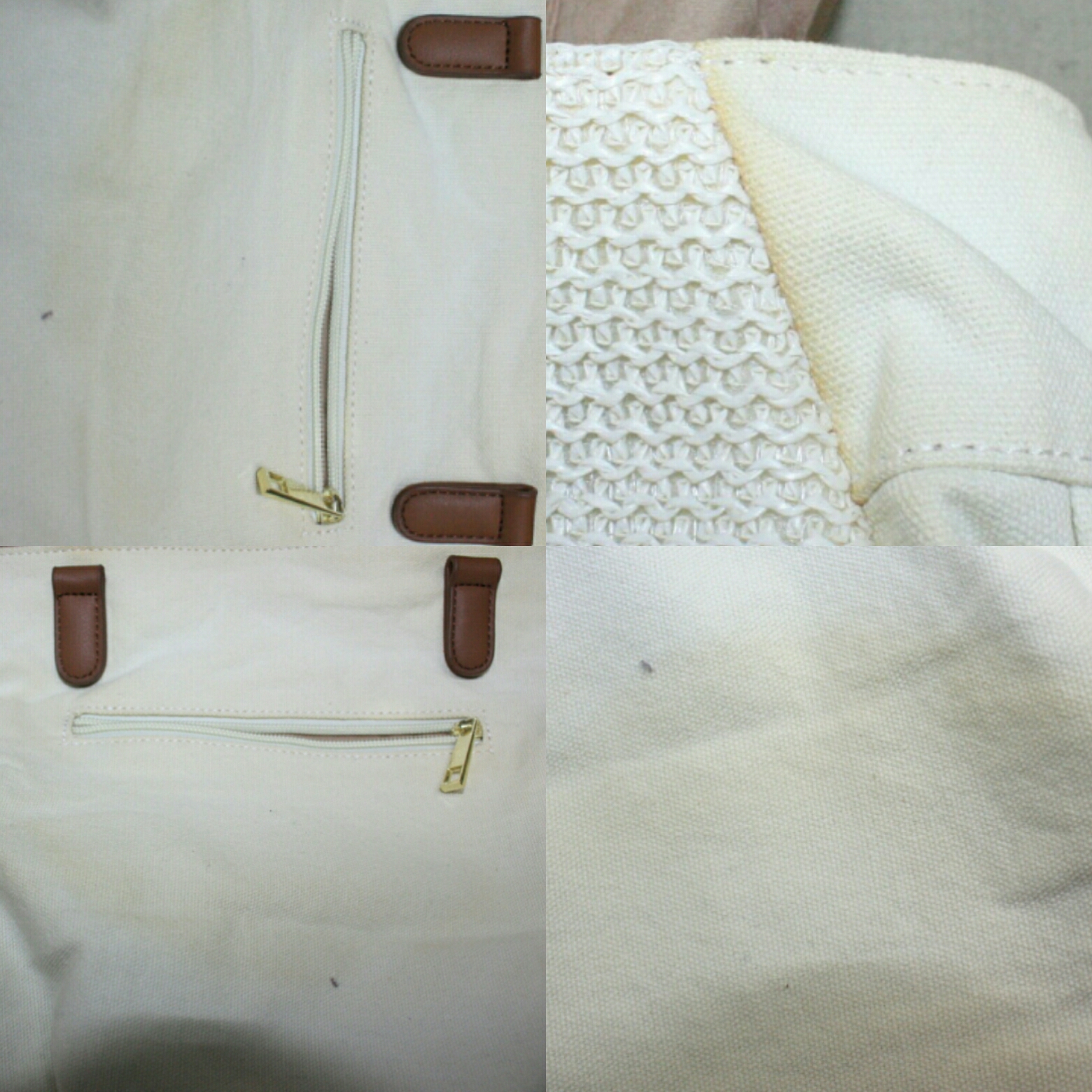 擦れたくすみや黒いスレ汚れなどはないものの液体を全体的にこぼして時間が経過してしまったシミでした。